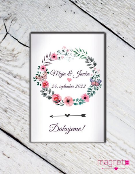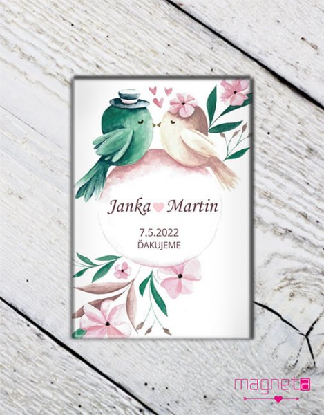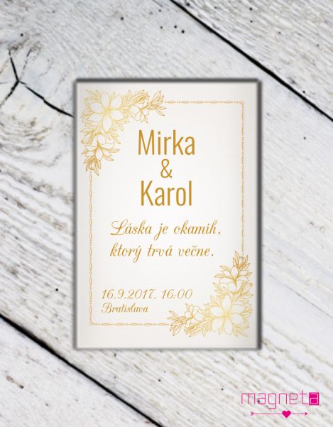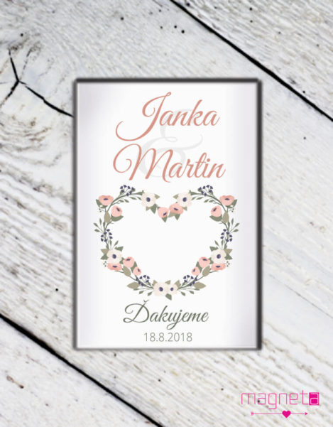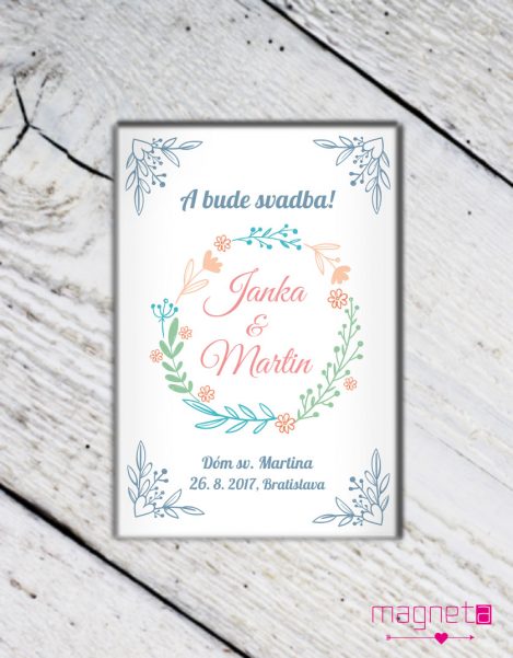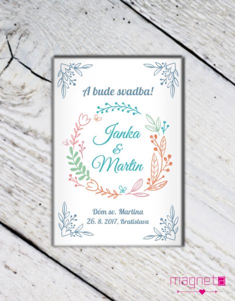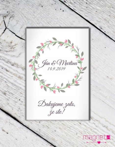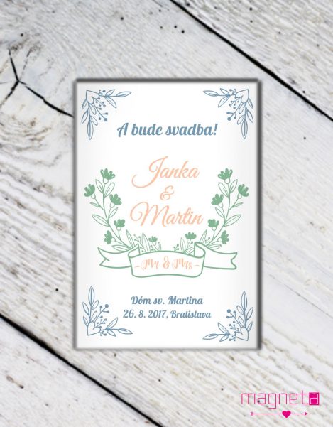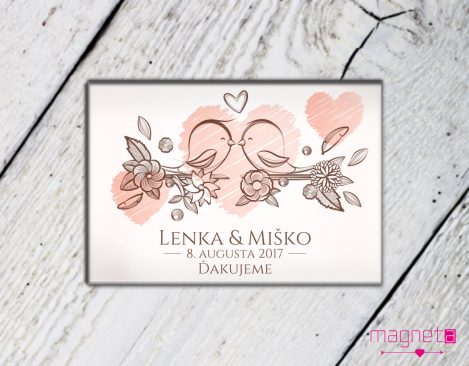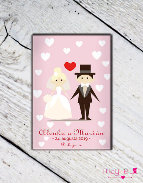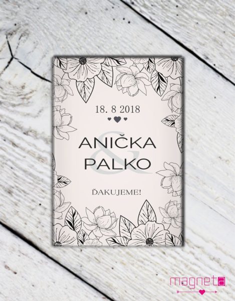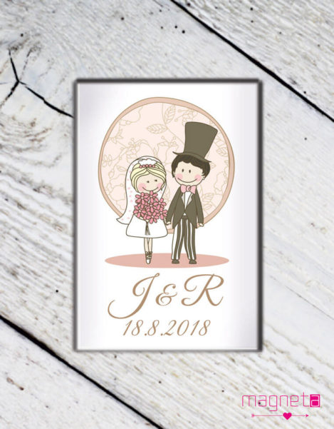 Svadobné magnetky na chladničku s grafickým motívom. Ponúkame vám na výber z množstva pripravených grafických vzhľadov. Stačí už len prepísať mená a dátum. A vaše krásne darčeky pre svadobných hostí môžeme začať vyrábať. 🙂
